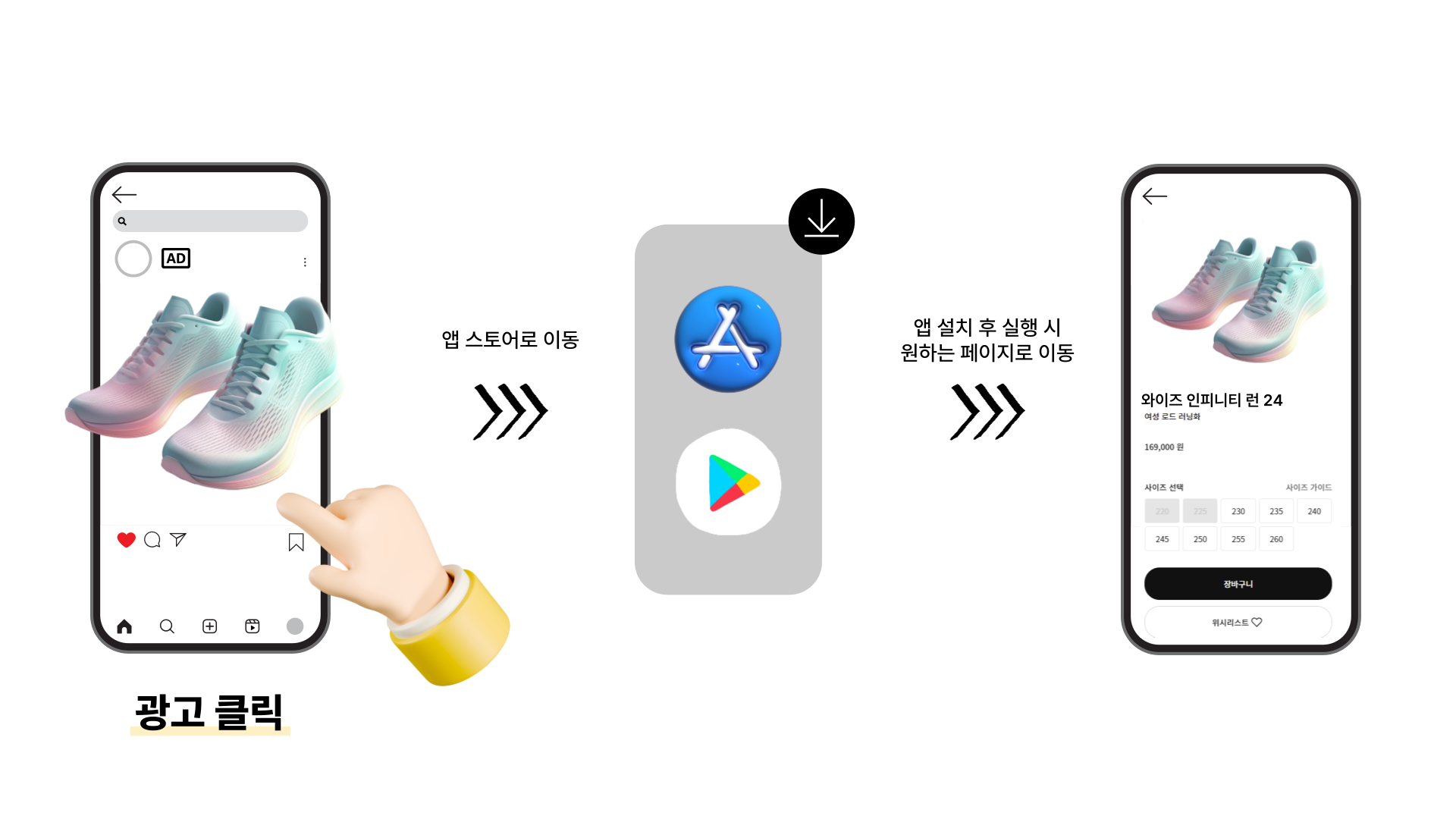 또한, **광고를 클릭한 사용자의 앱 설치 여부를 판별하여, 앱 미설치자는 스토어로, 앱 설치자는 앱 내 특정 페이지로 리다이렉트함으로써** 사용자 경험을 향상시킬 수 있습니다.&#x20;