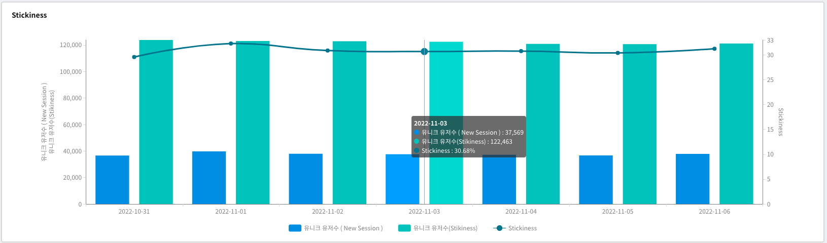 * 시간의 흐름에 따른 Stickiness 변화를 측정할 수 있습니다.