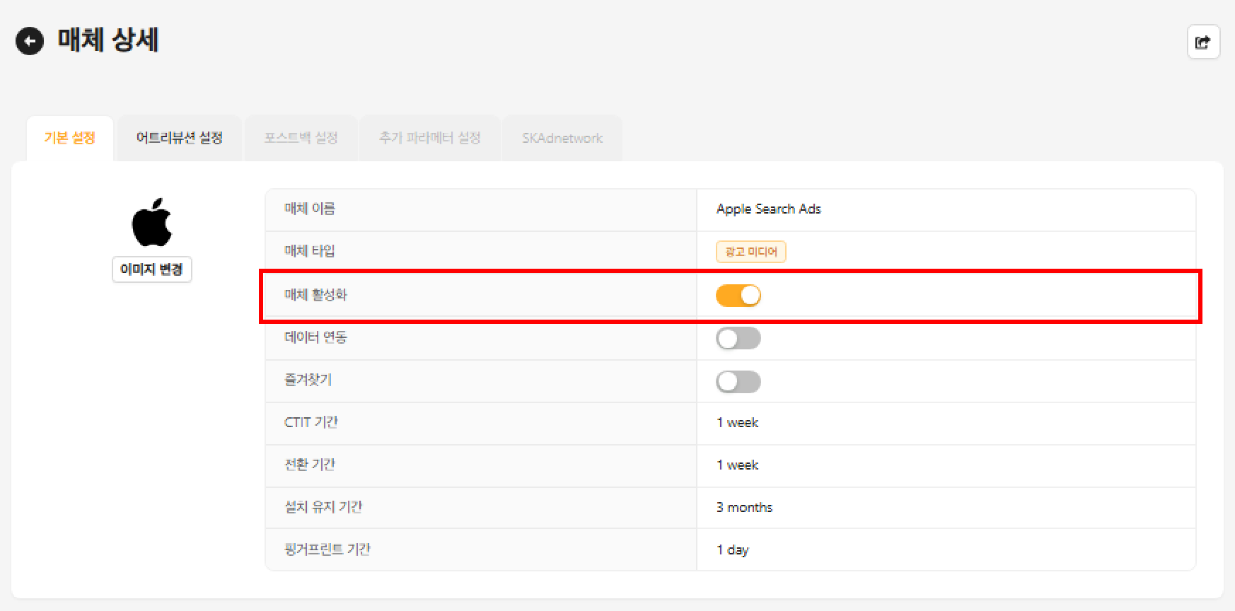 Apple Search Ads가 활성화된 시점부터 와이즈트래커는 해당 파트너에 대한 어트리뷰션을 시작합니다.